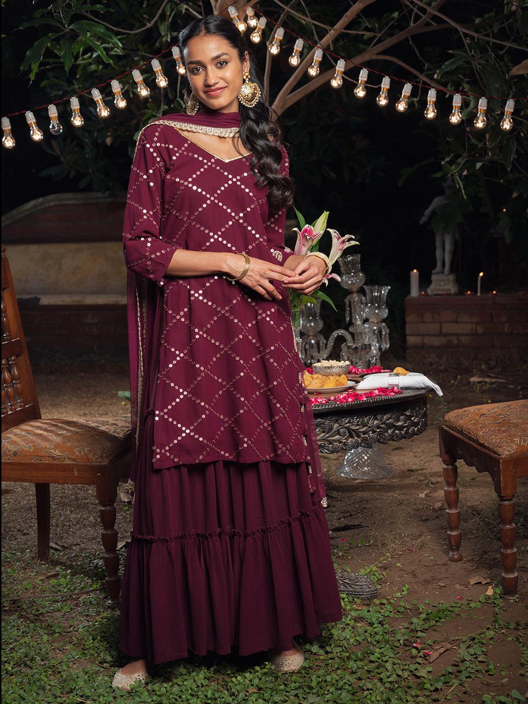 Embroidered Georgette Straight Sharara Suit